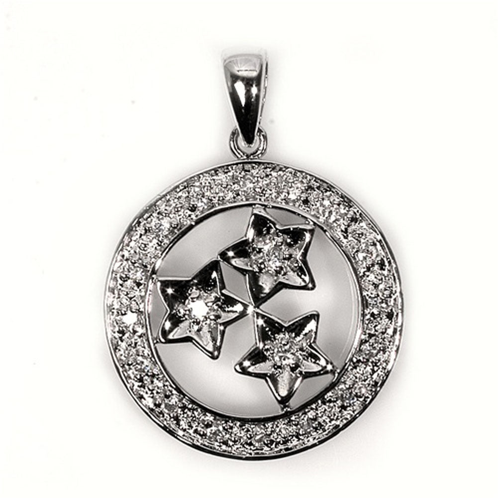 Sterling Silver Clear CZ Studded Star Circle Pendant Hoop Open Cluster Charm 925
