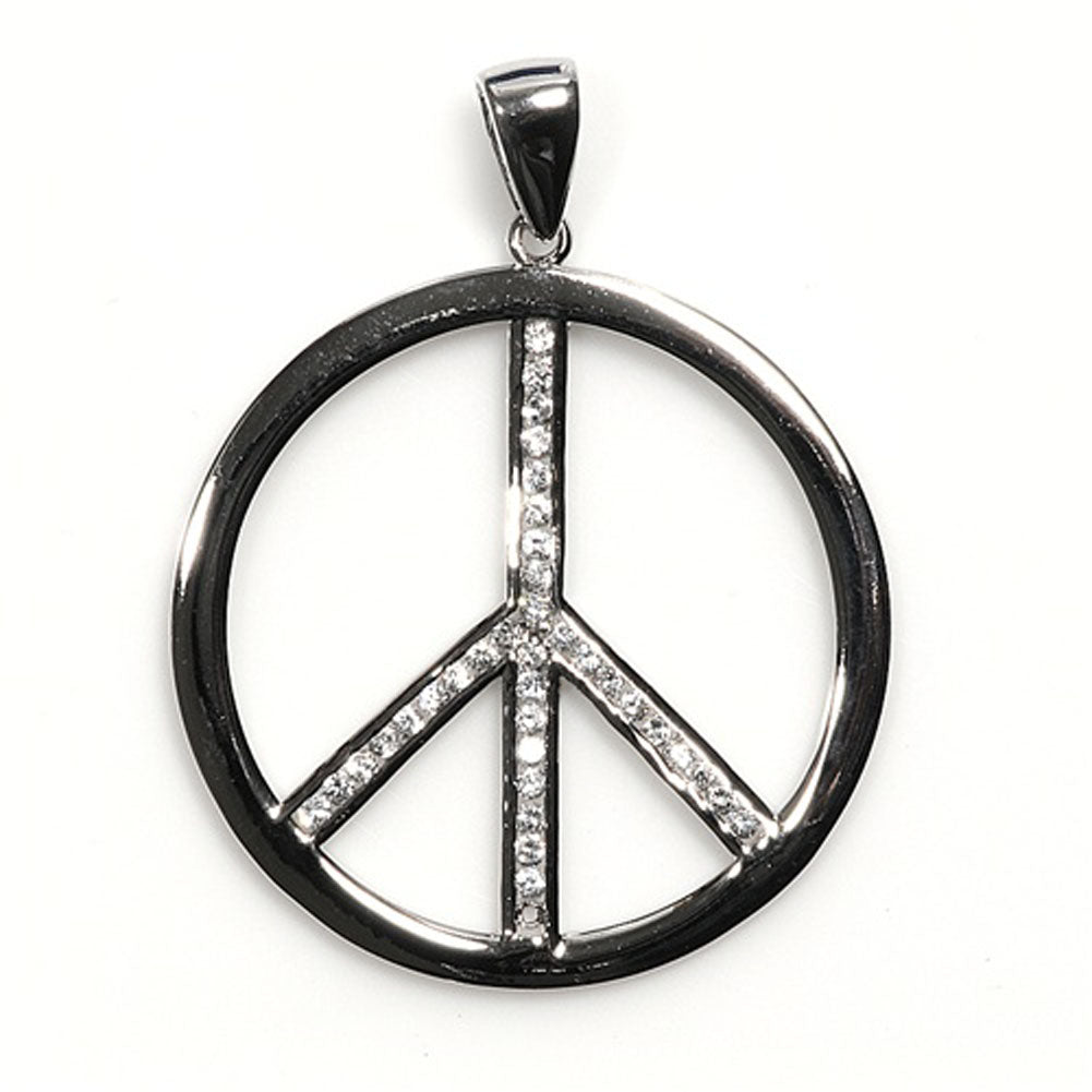 Sterling Silver Clear CZ Simple Peace Sign Pendant Outline Cluster Hoop Charm