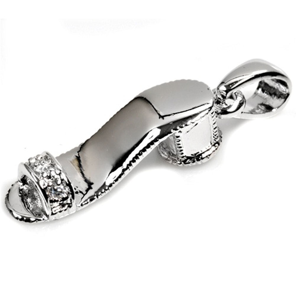 Shiny Fashion Shoe Pendant Clear Simulated CZ .925 Sterling Silver Heel Charm