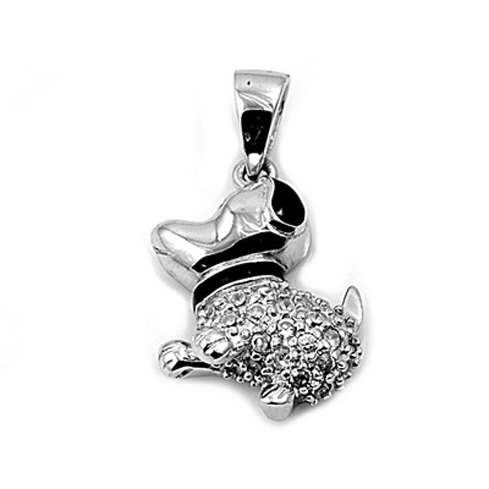 Studded Cute Dog Pendant Clear Simulated CZ .925 Sterling Silver Pet Charm