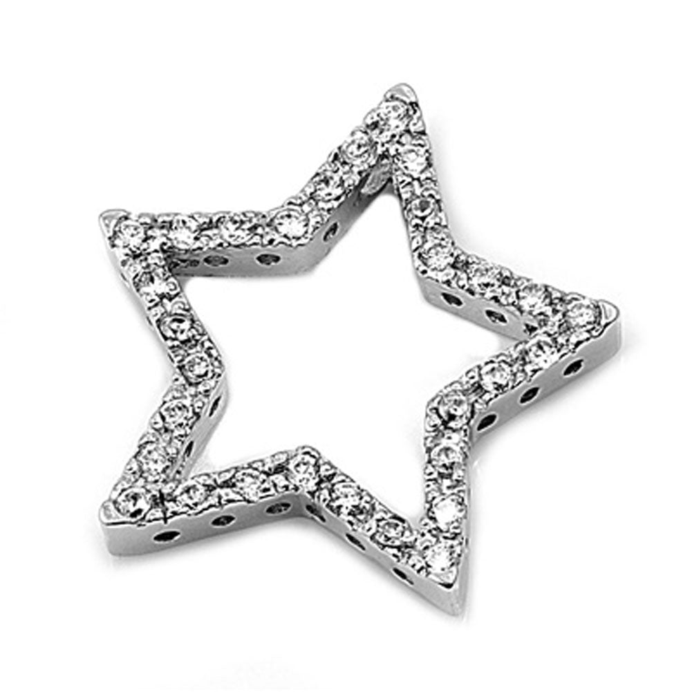 Cute Studded Star Pendant Clear Simulated CZ .925 Sterling Silver Open Charm
