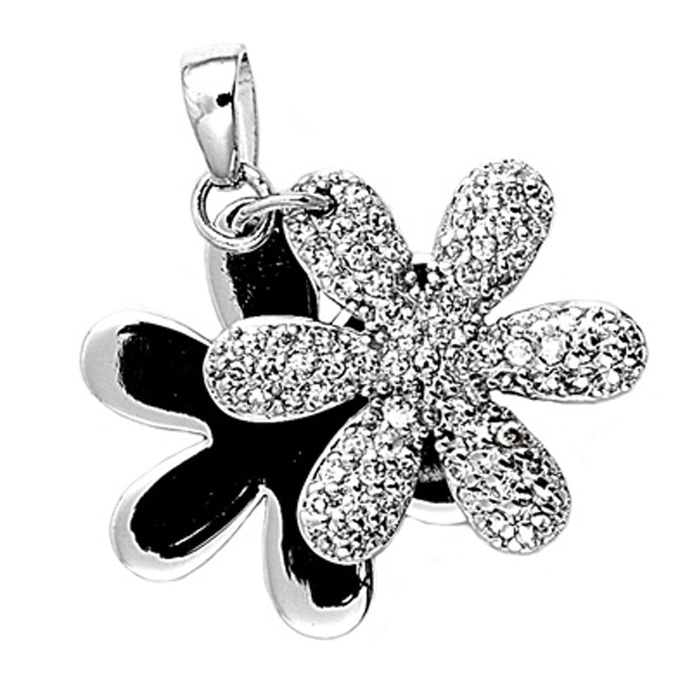 Retro Hippie Flower Pendant Clear Simulated CZ .925 Sterling Silver Mod Charm