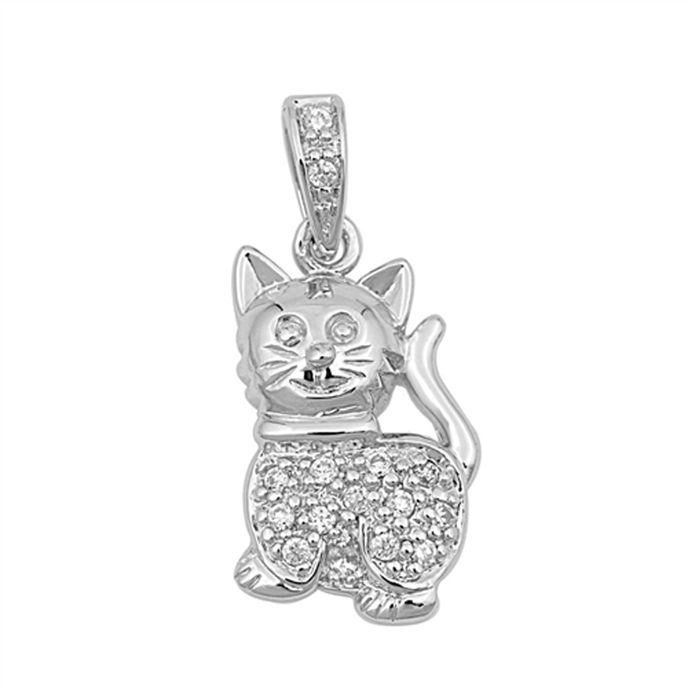 Sterling Silver Ornate Cute Encrusted Kitty Cat Pendant Clear Simulated CZ Charm