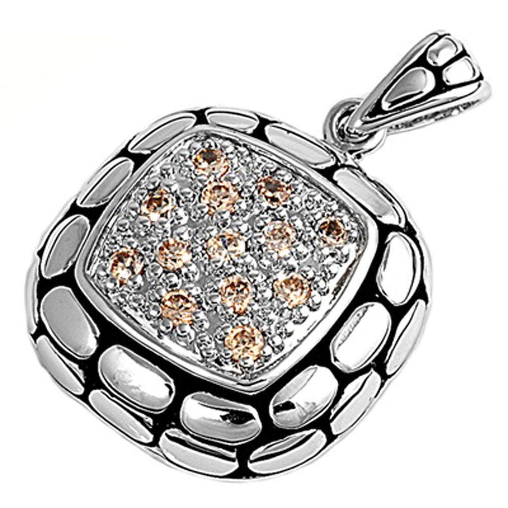 Sterling Silver Elegant Micro Pave Square Pendant Champagne Simulated CZ Charm
