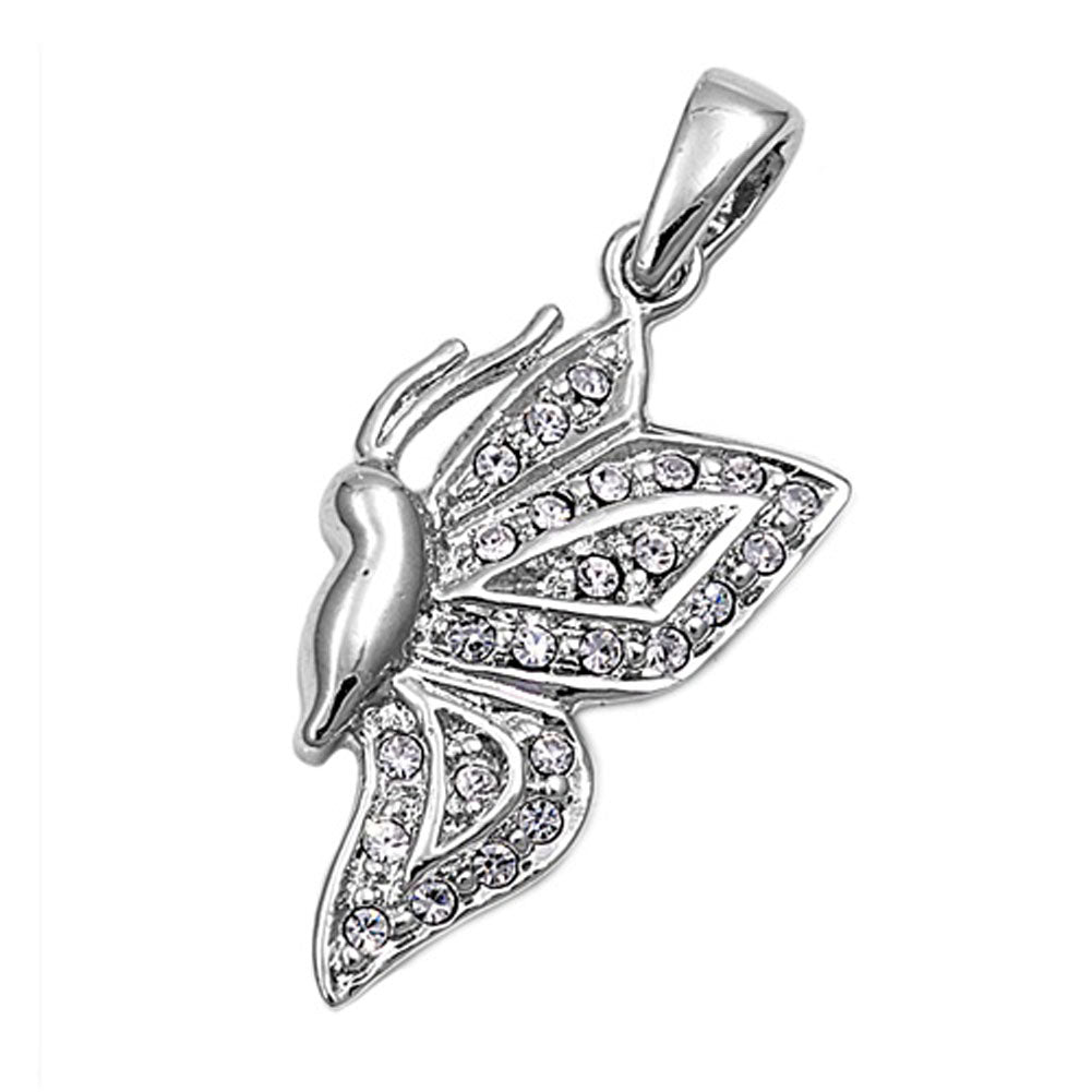 Micro Pave Butterfly Pendant Clear Simulated CZ .925 Sterling Silver Charm