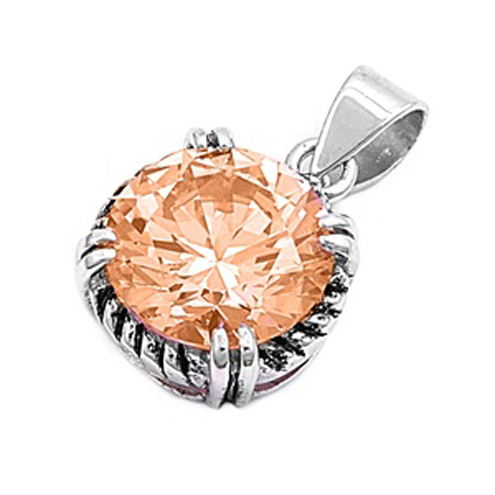Sterling Silver Solitaire Rope Twist Circle Pendant Champagne Simulated CZ Charm