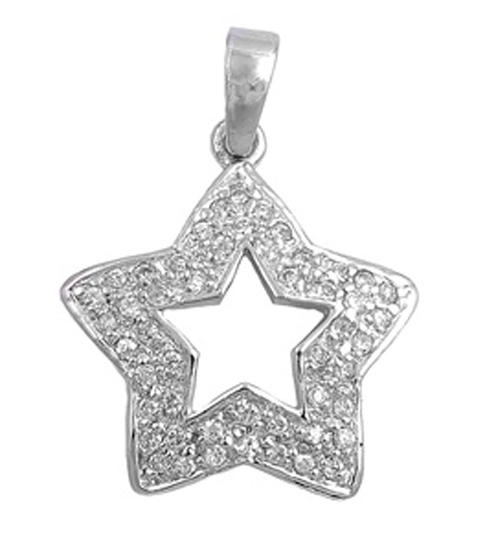 Micro Pave Star Pendant Clear Simulated CZ .925 Sterling Silver Cutout Charm