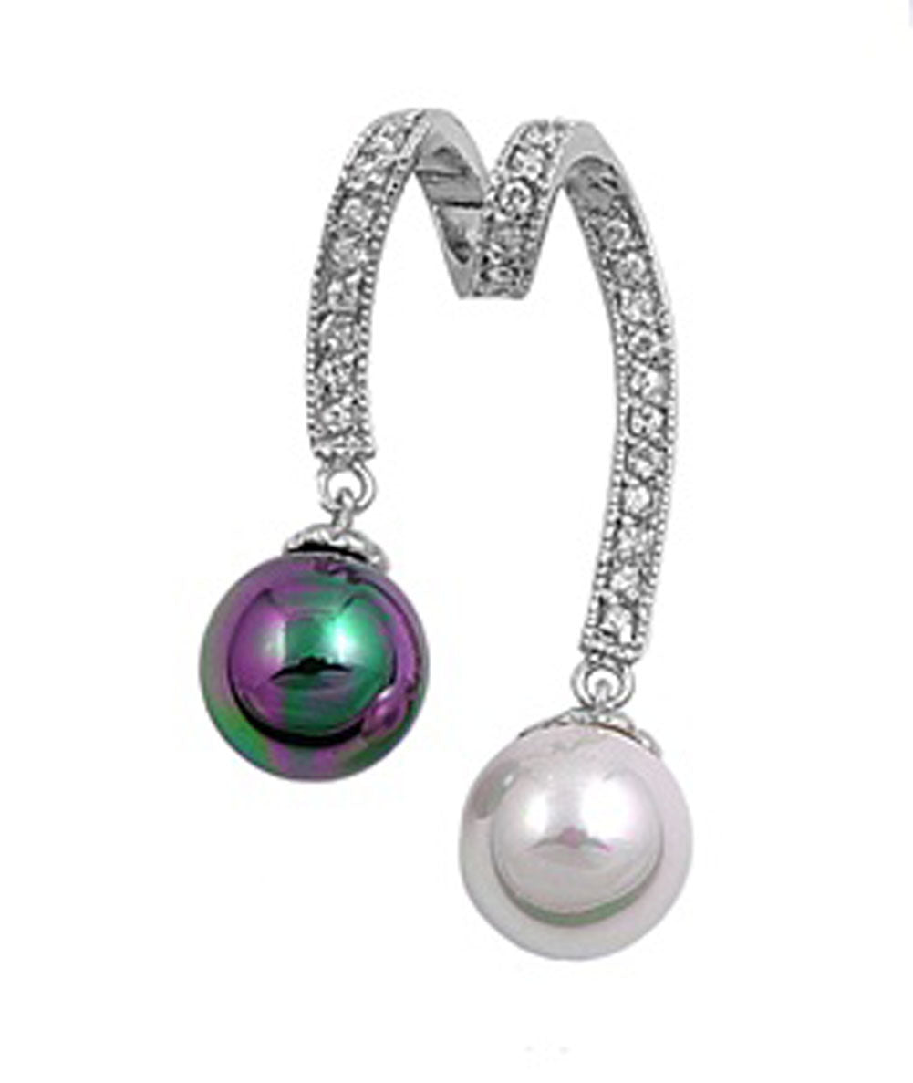 Sterling Silver Spiral Slider Pendant Simulated Pearl Clear Simulated CZ Charm
