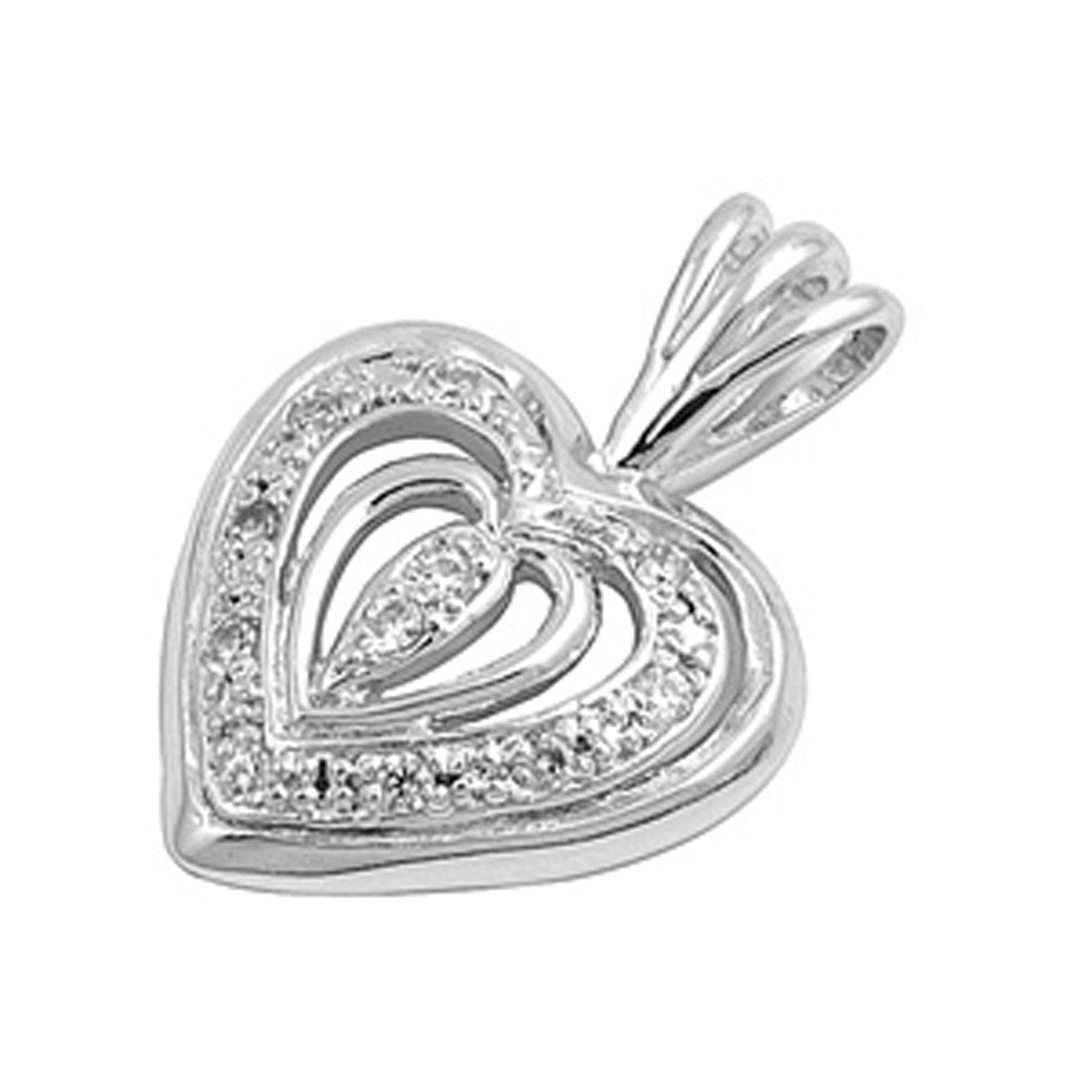 Ornate Cluster Heart Pendant Clear Simulated CZ .925 Sterling Silver Love Charm