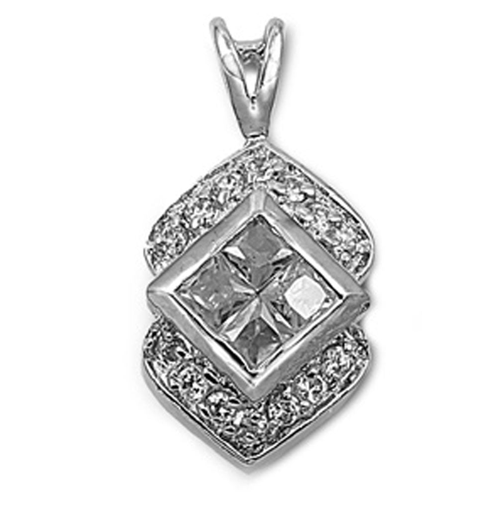 Bohemian Solitaire Square Pendant Clear Simulated CZ .925 Sterling Silver Charm