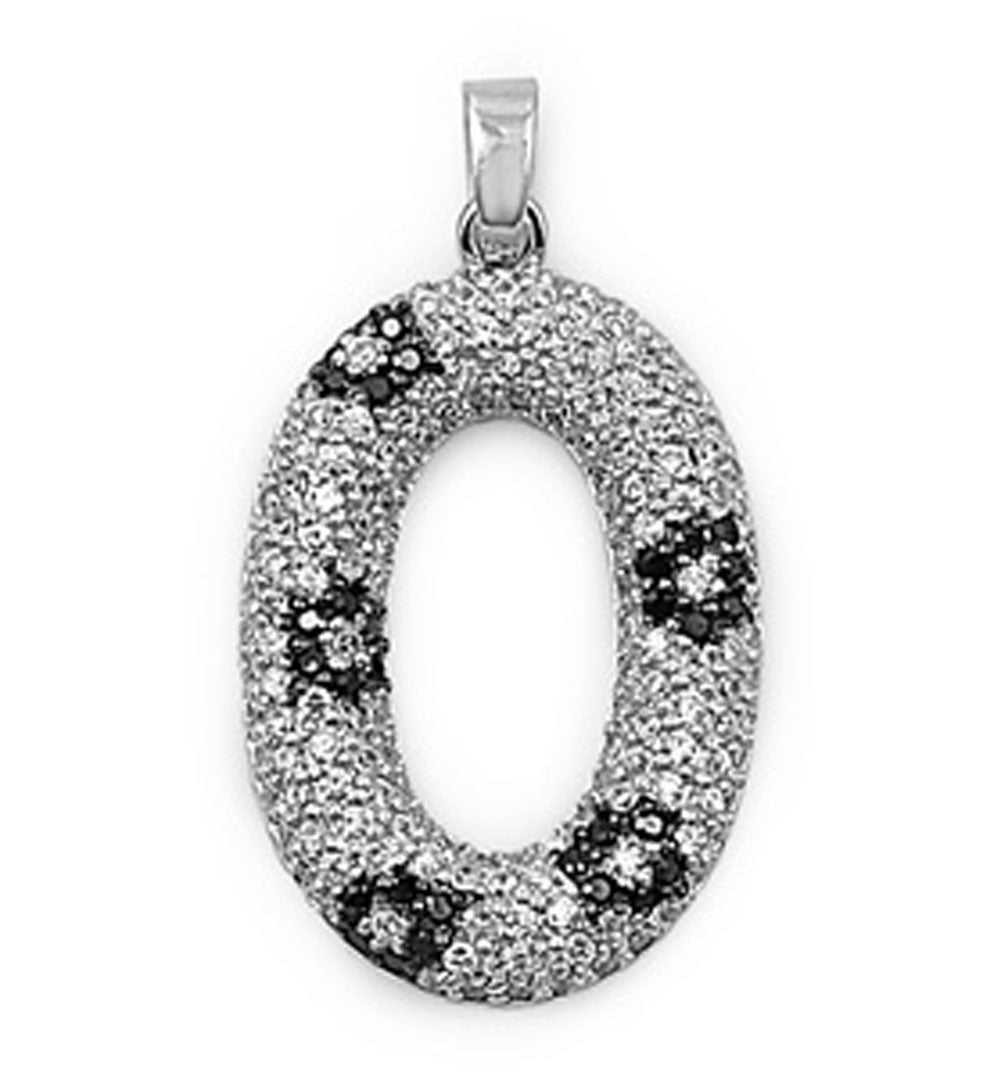 Micro Pave Oval Wreath Pendant Clear Simulated CZ .925 Sterling Silver Charm