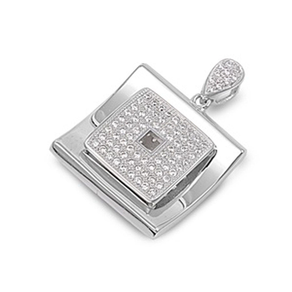 Concave Micro Pave Square Pendant Clear Simulated CZ .925 Sterling Silver Charm