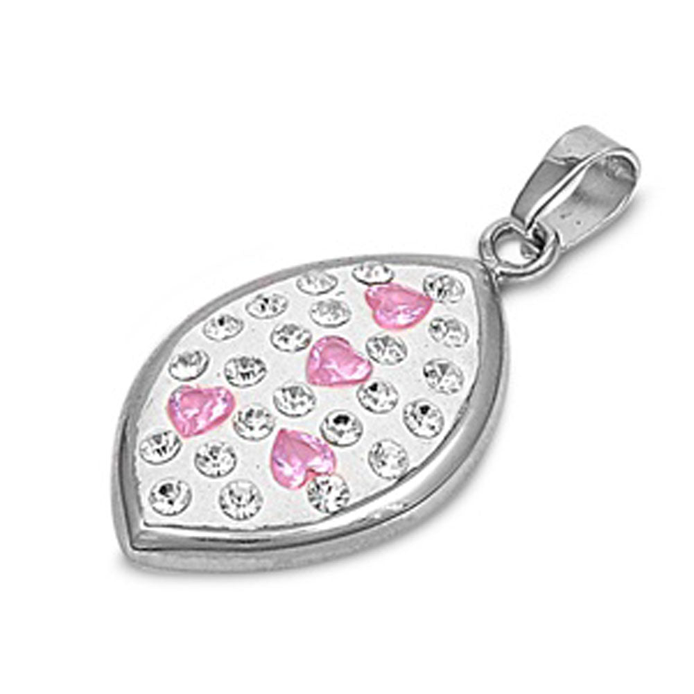 Mosaic Studded Heart Pendant Pink Simulated CZ .925 Sterling Silver Cute Charm
