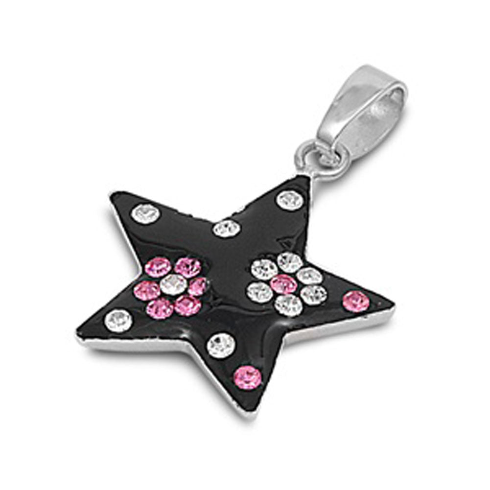 Bold Flower Black Star Pendant Pink Simulated CZ .925 Sterling Silver Charm