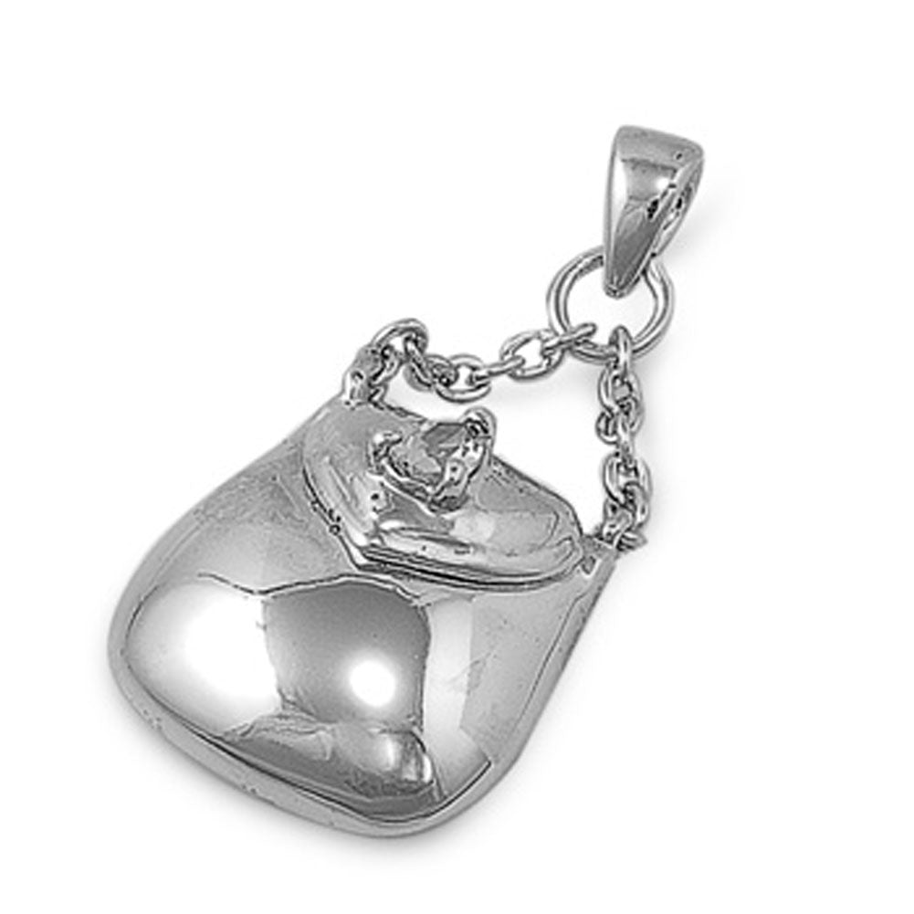 Cute Bubble Bag Pendant Clear Simulated CZ .925 Sterling Silver Purse Charm