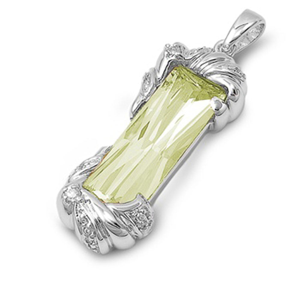 Sterling Silver Ornate High Polish Rectangle Pendant Simulated Peridot Charm