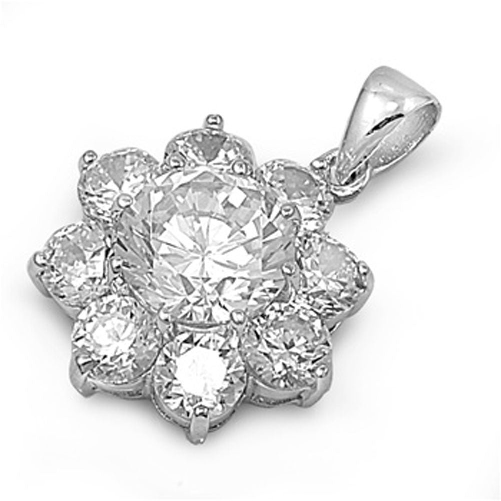Bold Studded Flower Pendant Clear Simulated CZ .925 Sterling Silver Halo Charm