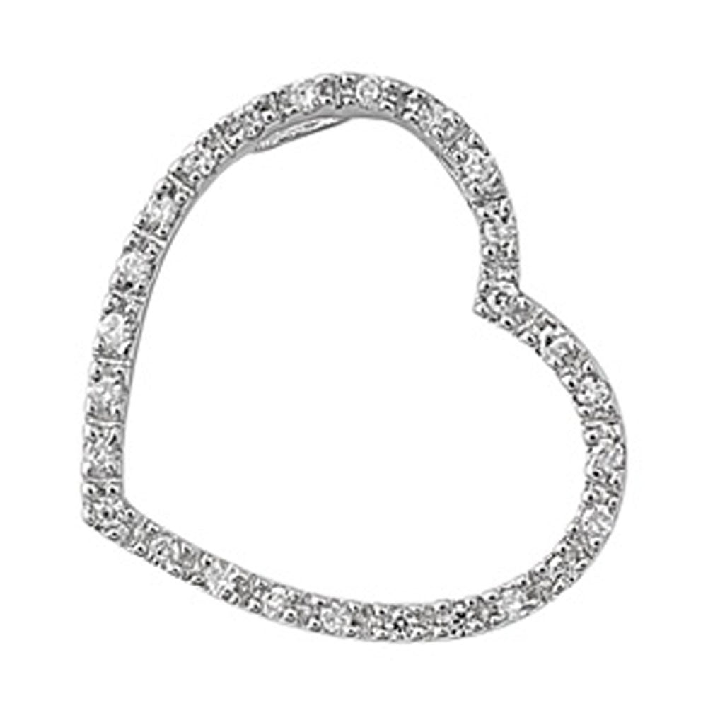 Wide Slider Heart Pendant Clear Simulated CZ .925 Sterling Silver Outline Charm