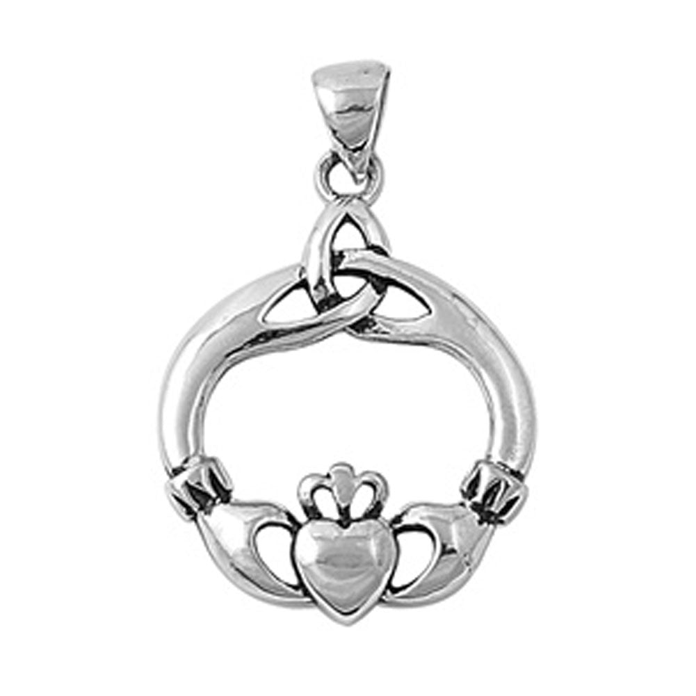Heart Celtic Trinity Knot Claddagh Pendant .925 Sterling Silver Promise Charm