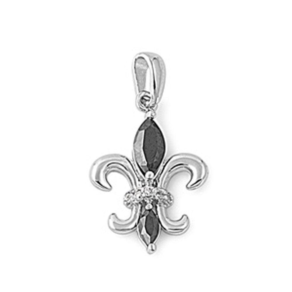 Traditional Fleur De Lis Pendant Black Simulated CZ .925 Sterling Silver Charm