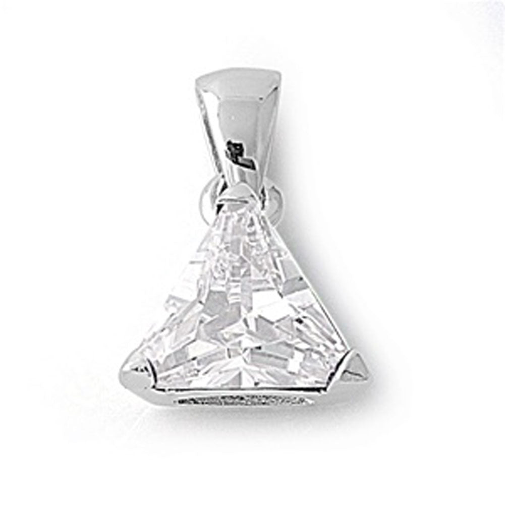 Solitaire Plain Triangle Pendant Clear Simulated CZ .925 Sterling Silver Charm