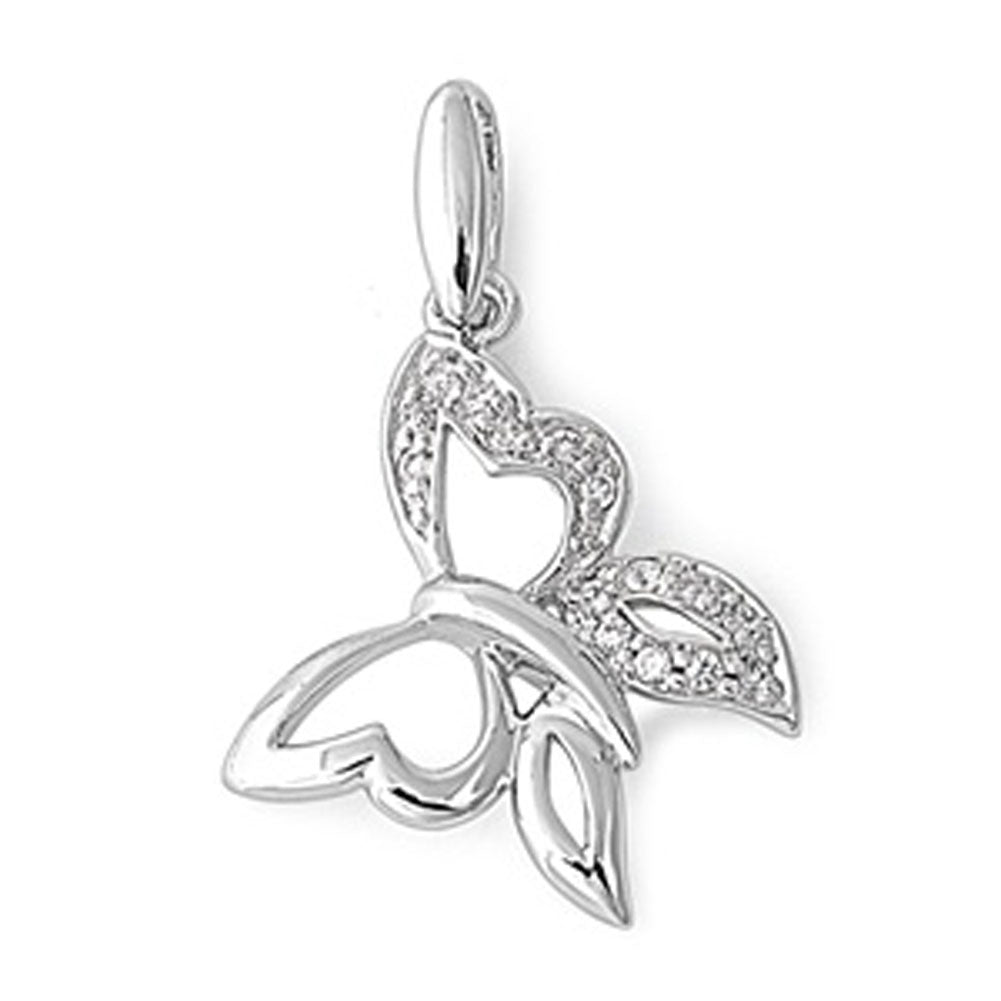 Sterling Silver Sparkly High Polish Butterfly Pendant Clear Simulated CZ Charm