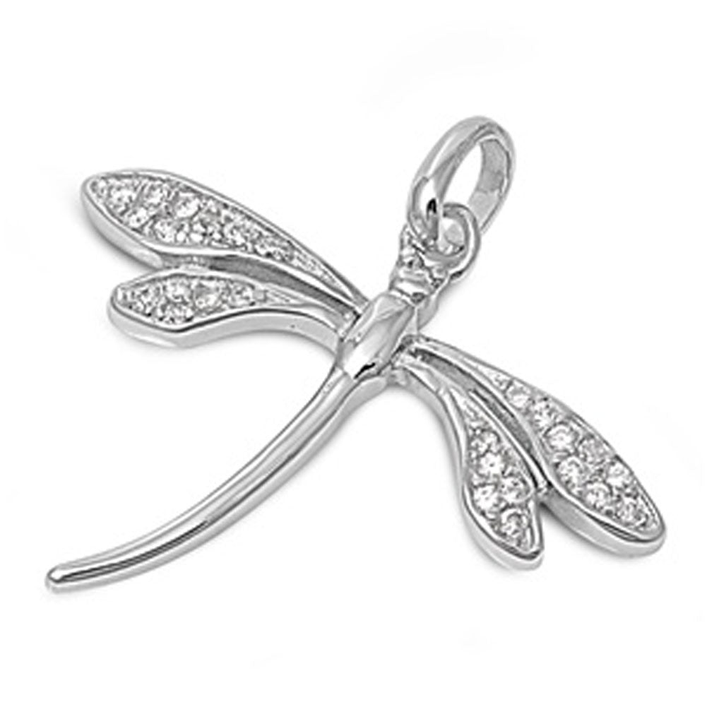 Slender Dragonfly Pendant Clear Simulated CZ .925 Sterling Silver Shiny Charm