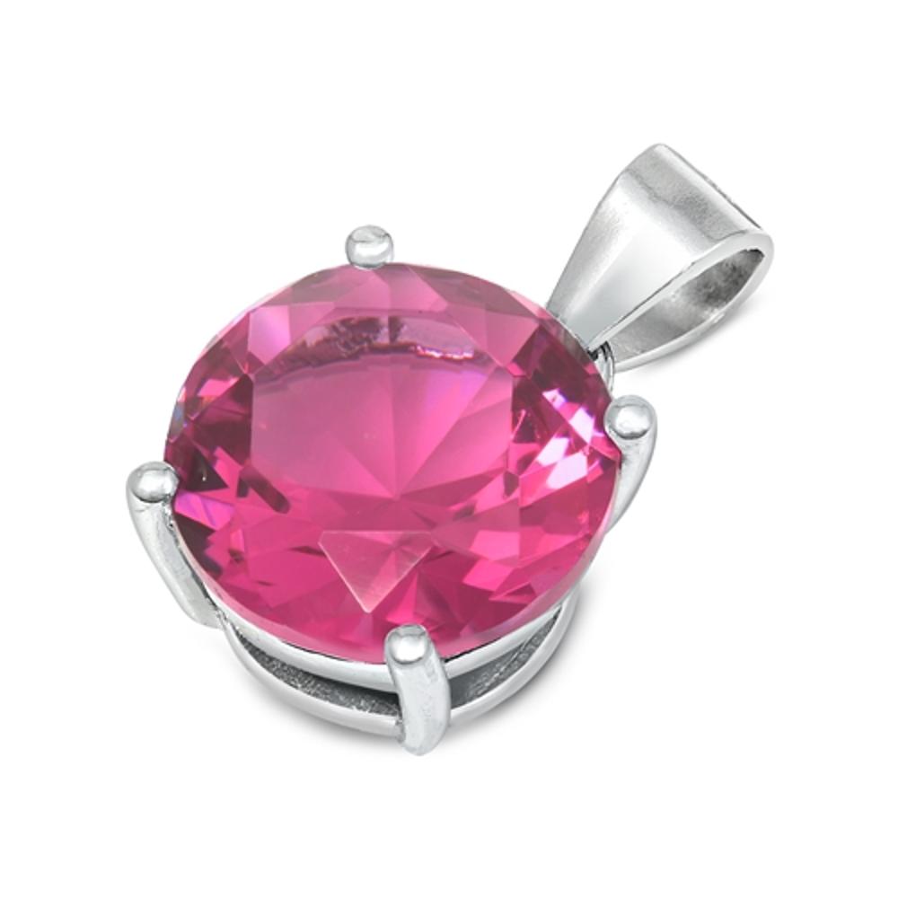Solitaire Basic Circle Pendant Rose Pink Simulated CZ .925 Sterling Silver Charm
