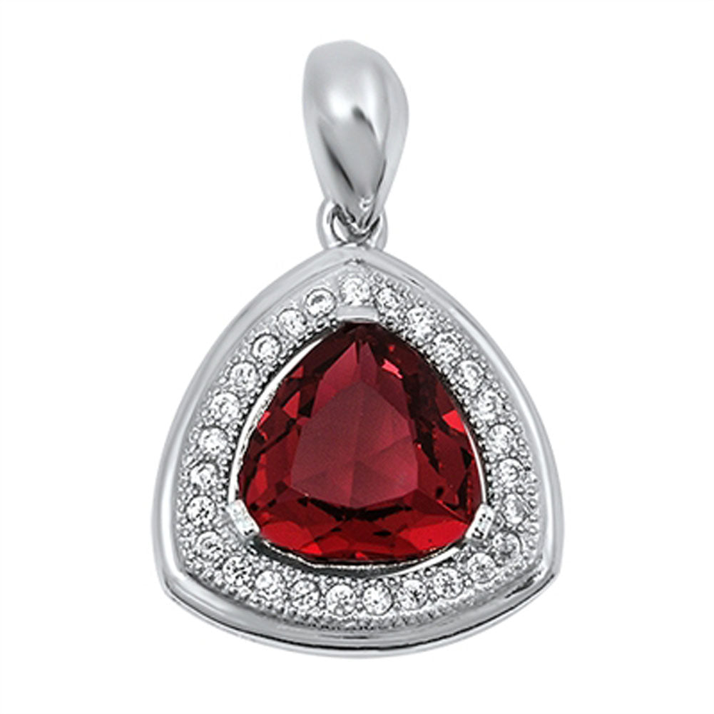 Rounded Triangle Pendant Simulated Garnet .925 Sterling Silver Halo Charm