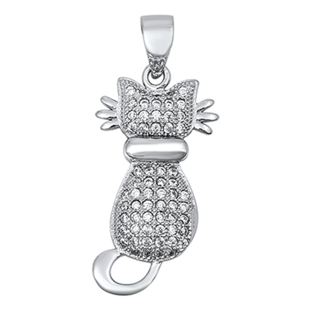 Cat Back Silhouette Pendant Clear Simulated CZ .925 Sterling Silver Pet Charm
