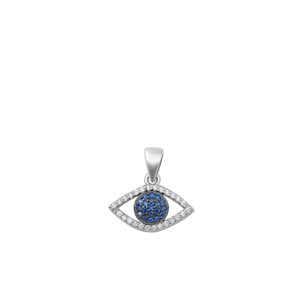 Sterling Silver Cute Clear & Blue Sapphire CZ Pendant Evil Eye Fashion Charm