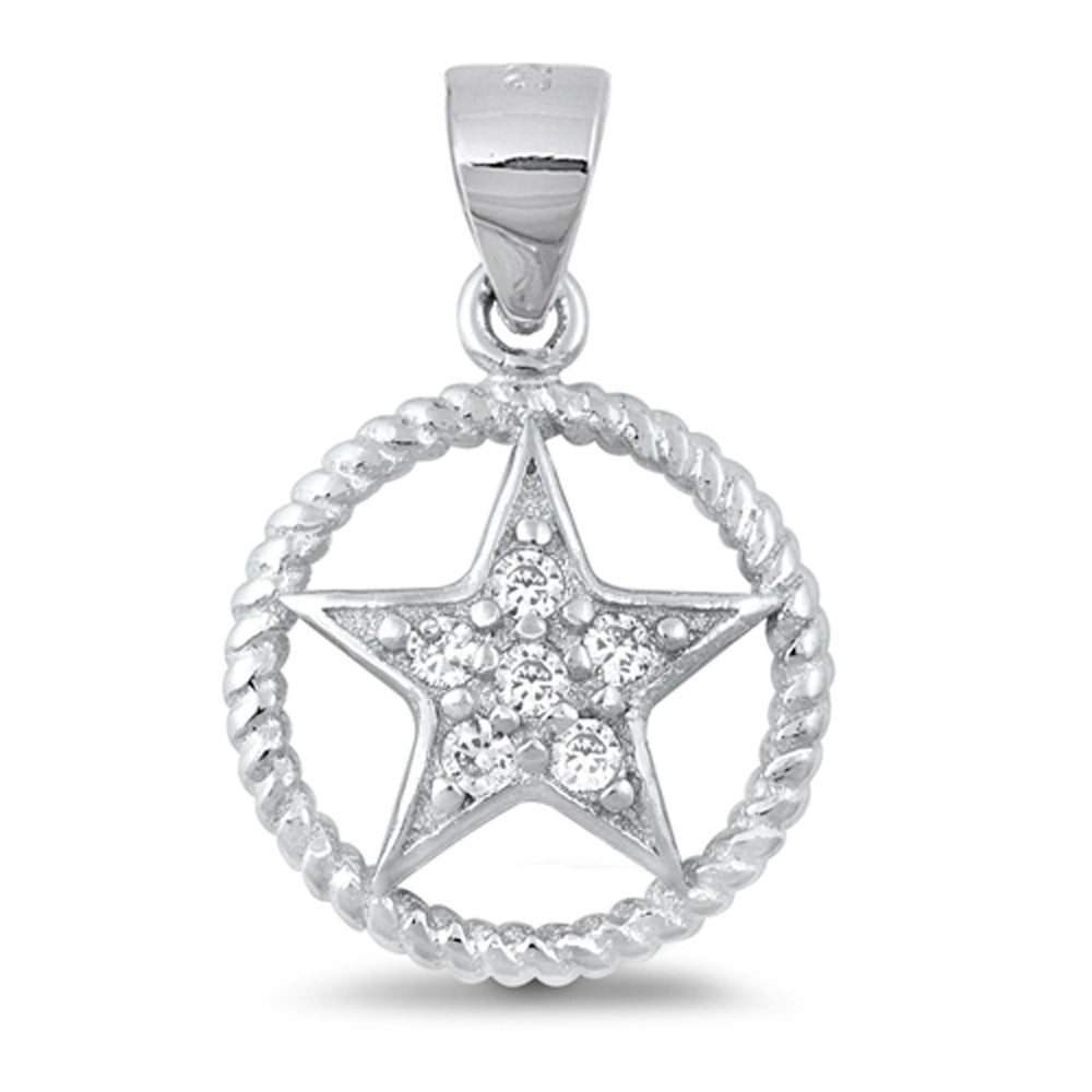 Sterling Silver Clear CZ Cluster Star Pendant Nautical Rope Classic Charm 925