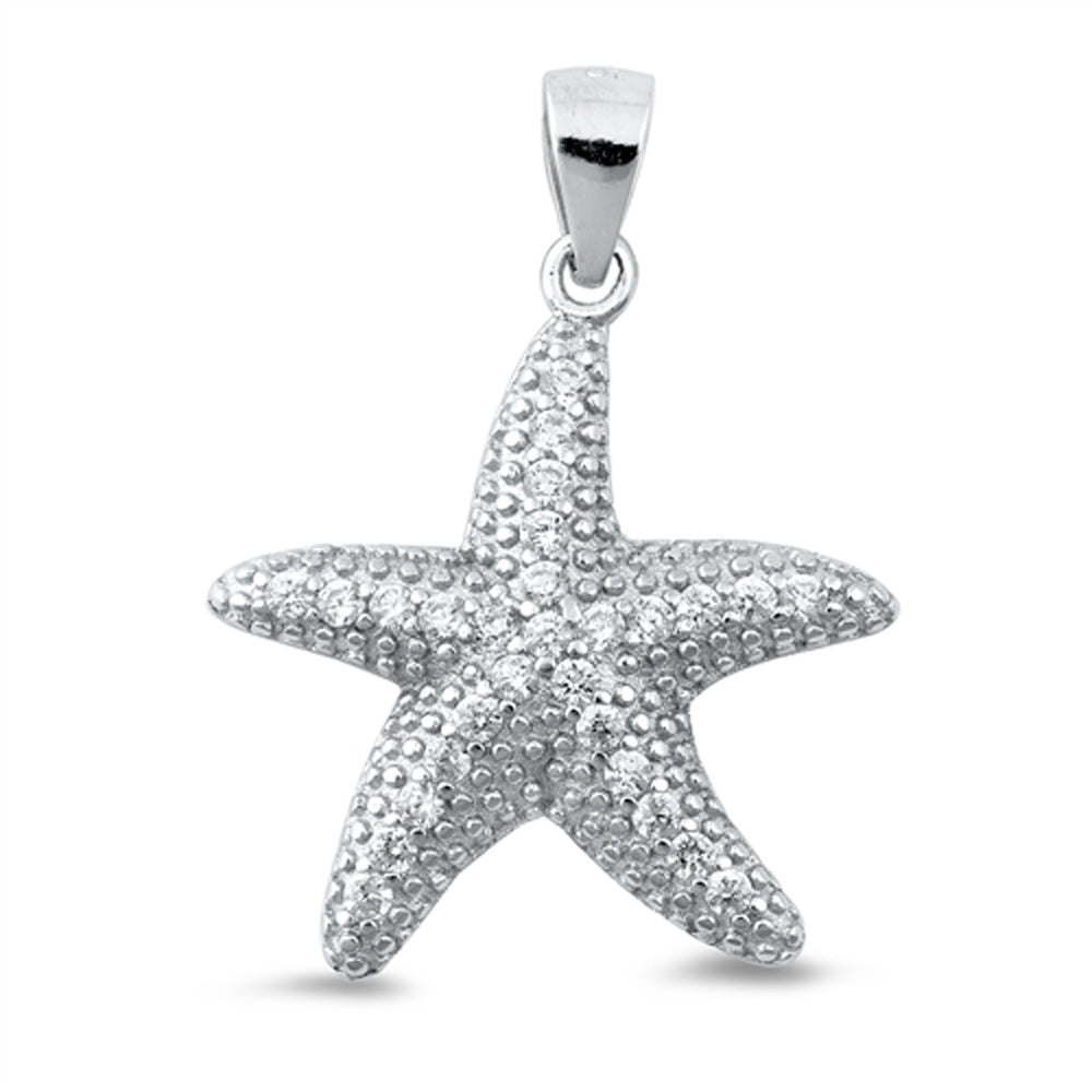 Sterling Silver Clear CZ Starfish Pendant Sea Star Ocean Sea Creature Charm 925