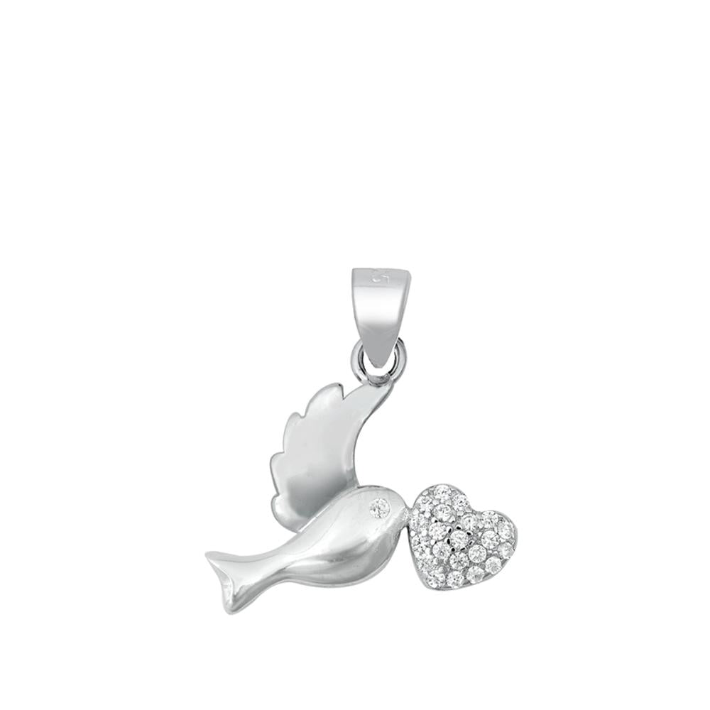 Sterling Silver Clear CZ Sparrow Heart Dove Pendant Animal Bird Peace Cute Charm