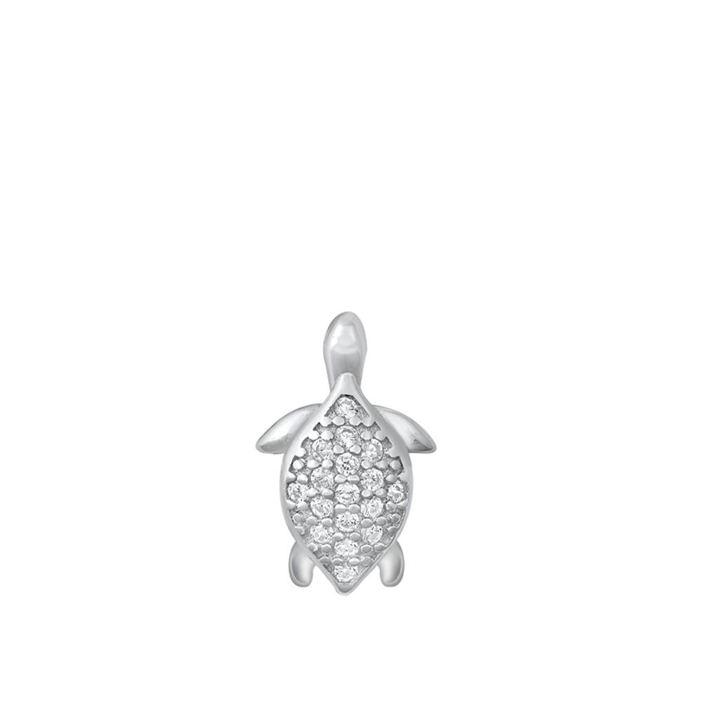 Sterling Silver Clear CZ Turtle Pendant Micro Pave Cute Animal Ocean Charm 925