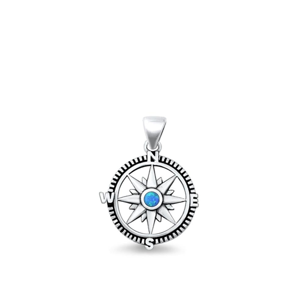Sterling Silver High Polished Blue Synthetic Opal Compass Pendant Charm 925 New