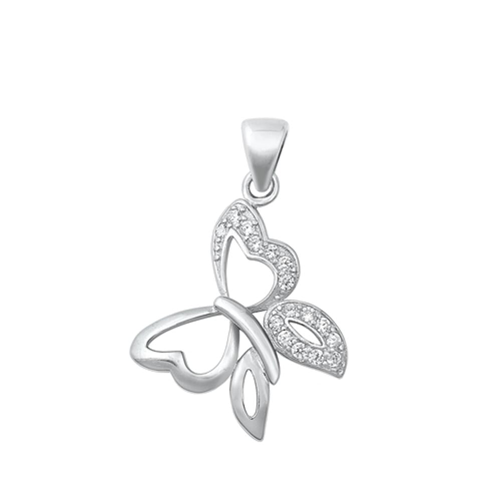 Sterling Silver Beautiful Clear CZ Butterfly Pendant Happiness Joy Charm 925 New