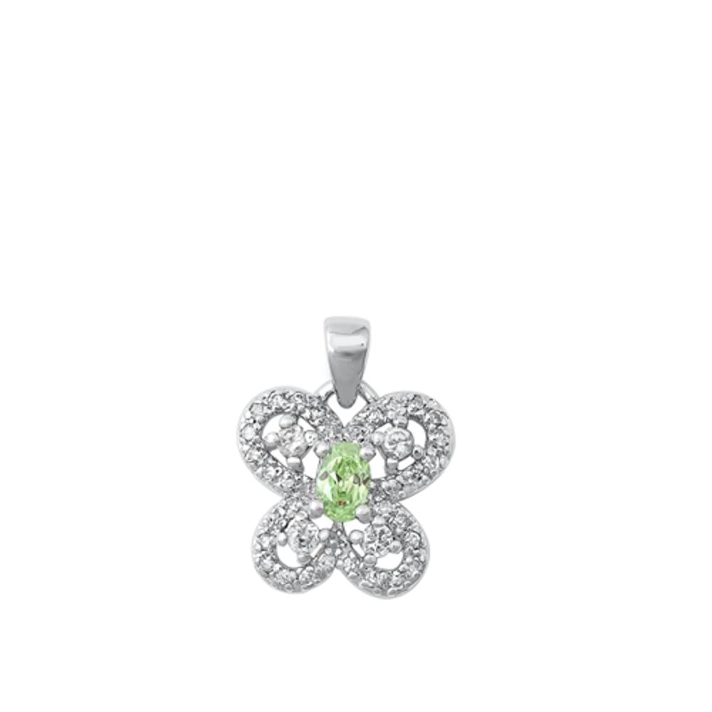 Sterling Silver Unique Emerald Light Green CZ Charm Clear CZ Butterfly Pendant