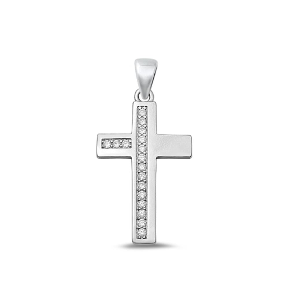 Sterling Silver Fashion Classy Clear CZ Cross Pendant .925 New Christian Charm