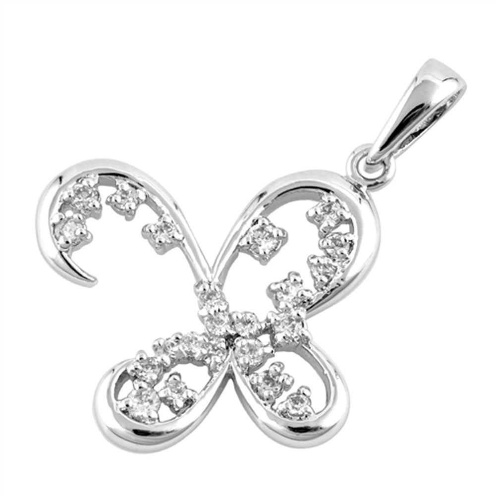 Sterling Silver Abstract Open Wing Butterfly Clear Simulated CZ Pendant Charm