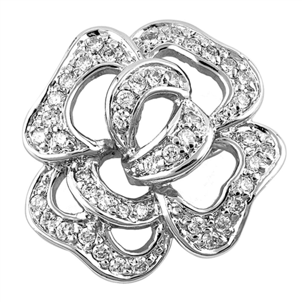 Sterling Silver Encrusted Rose Outline Sparkly Clear Simulated CZ Pendant Charm