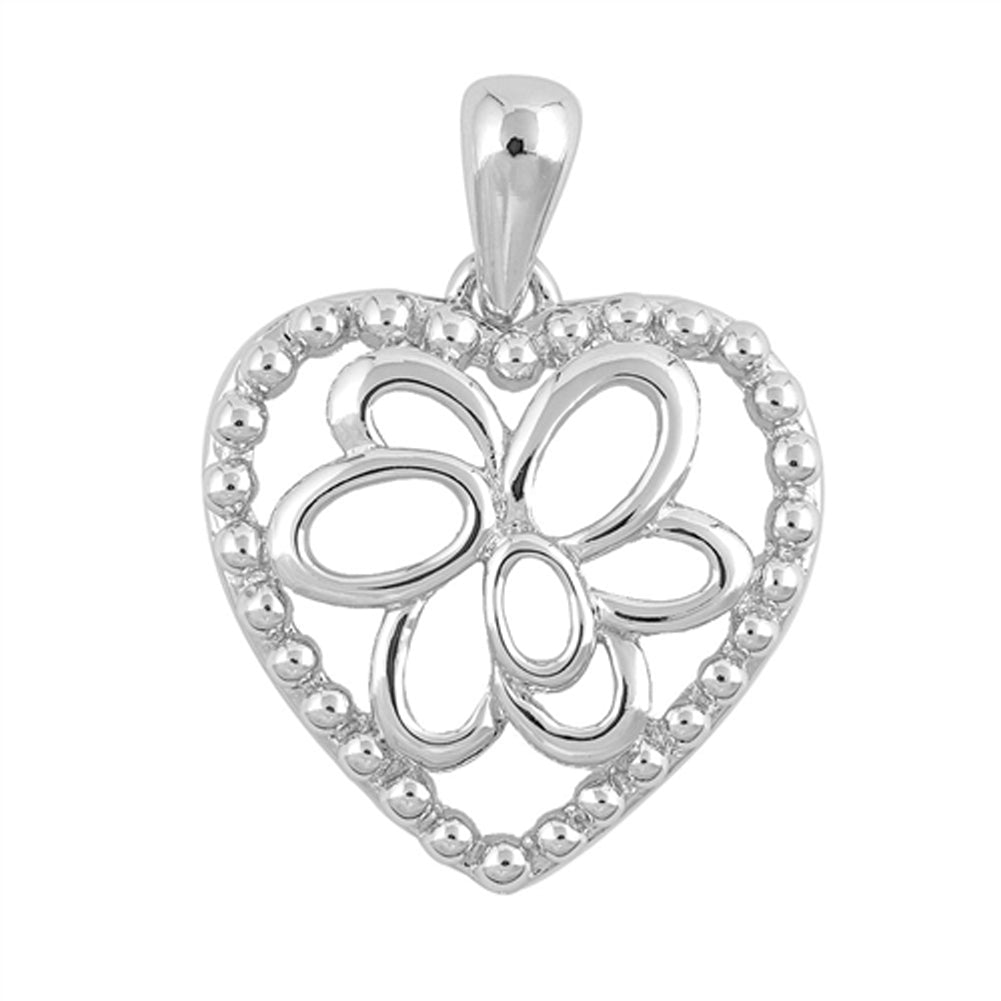 Heart Abstract Flower Pendant .925 Sterling Silver Multiple Oval Circle Charm