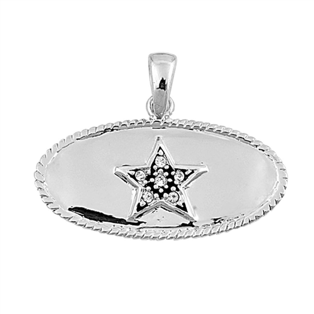 Oxidized Studded Star Oval Clear Simulated CZ Pendant .925 Sterling Silver Charm
