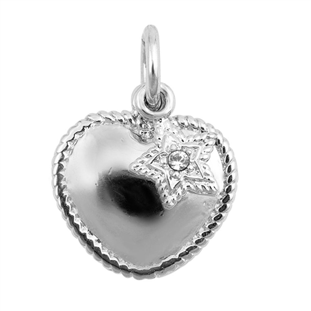 Simple Promise Heart Pendant Clear Simulated CZ .925 Sterling Silver Flat Charm