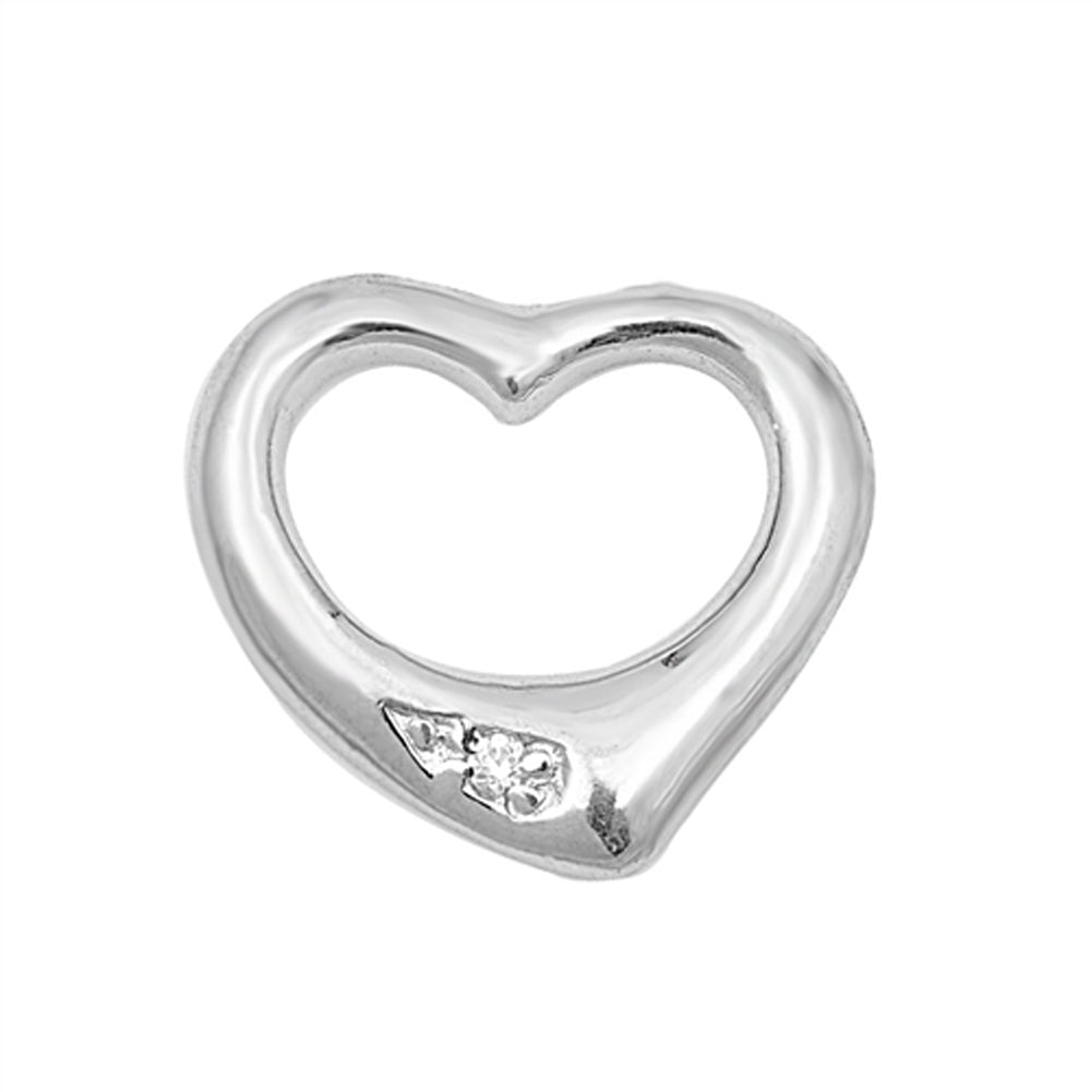 High Polish Promise Heart Pendant Clear Simulated CZ .925 Sterling Silver Charm