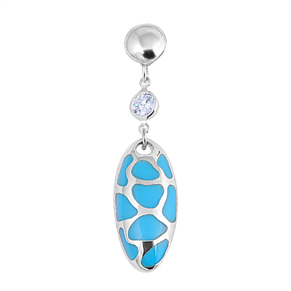 Sterling Silver Unique Spotted Oval Dangle Pendant Clear Simulated CZ Charm