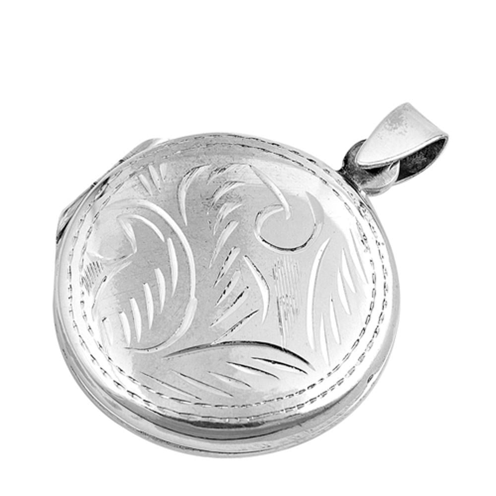 Sterling Silver Etched Round Locket Pendant Vintage Classic Traditional Charm