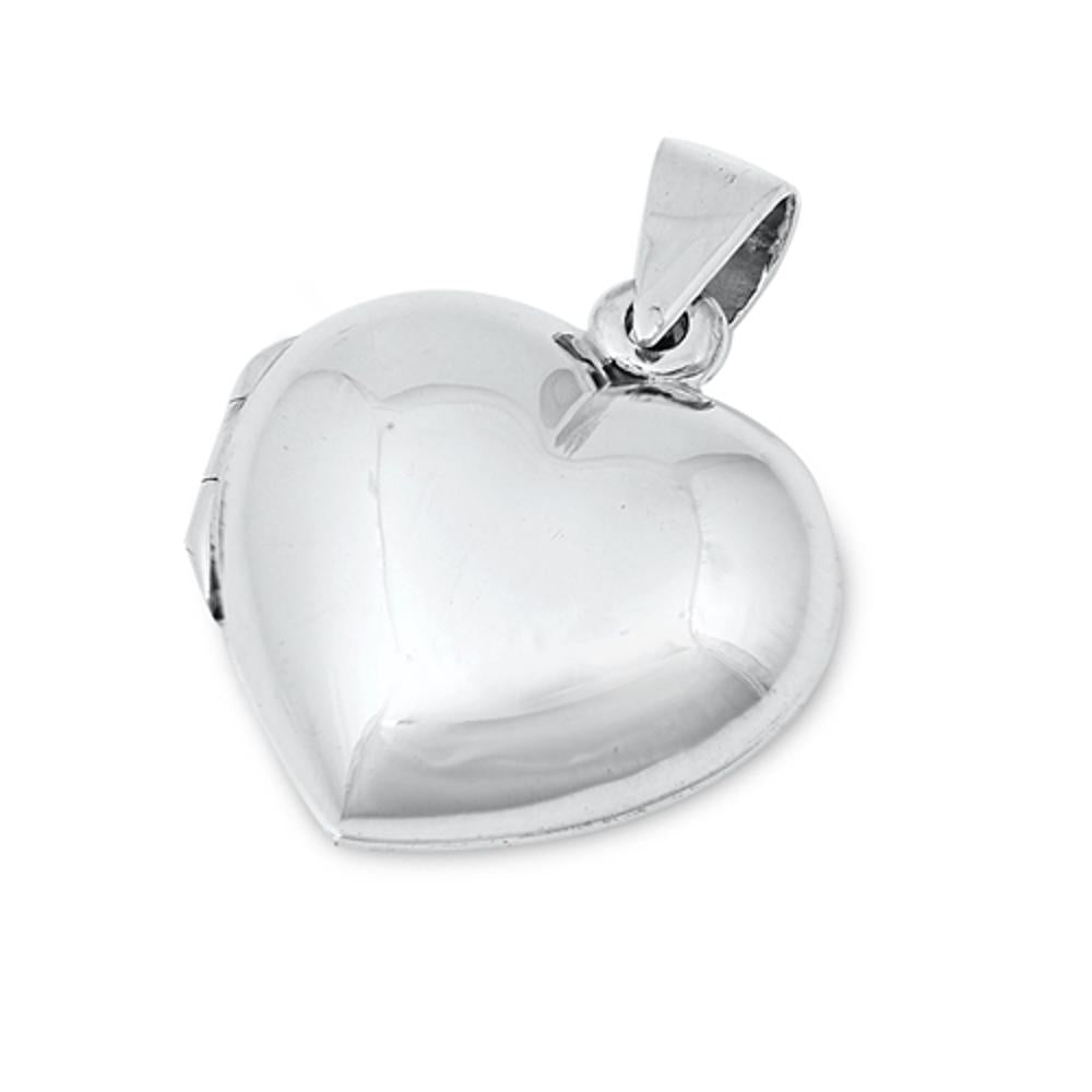 Sterling Silver Puffy Heart Locket Pendant High Polish Elegant Engravable Charm