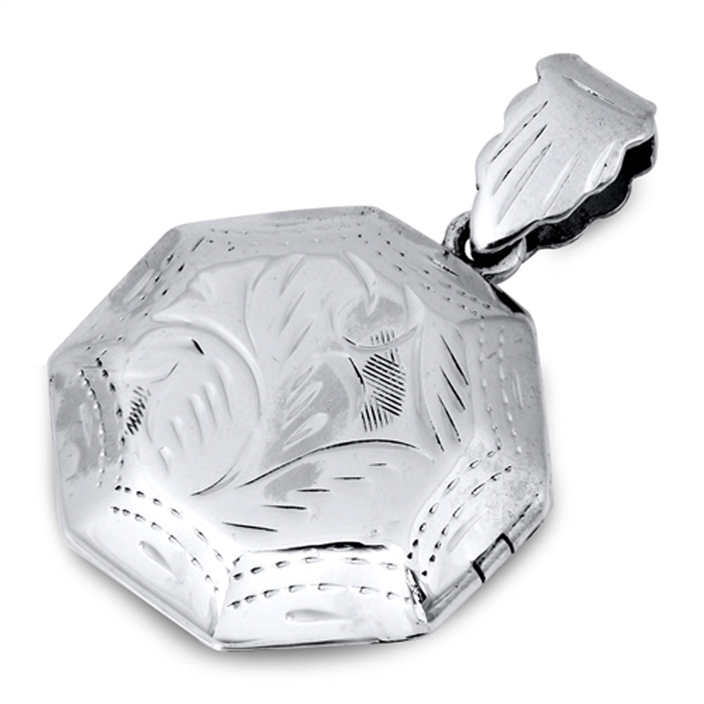 Sterling Silver Vintage Style Locket Pendant Octagon Engraved Detail Charm 925