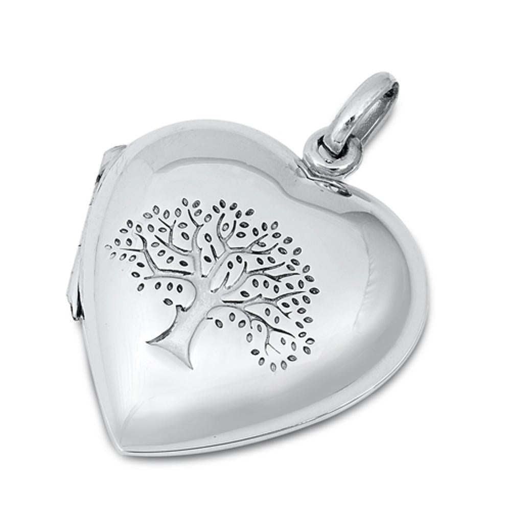 Sterling Silver Tree of Life Locket Pendant High Polish Elegant Classic Charm